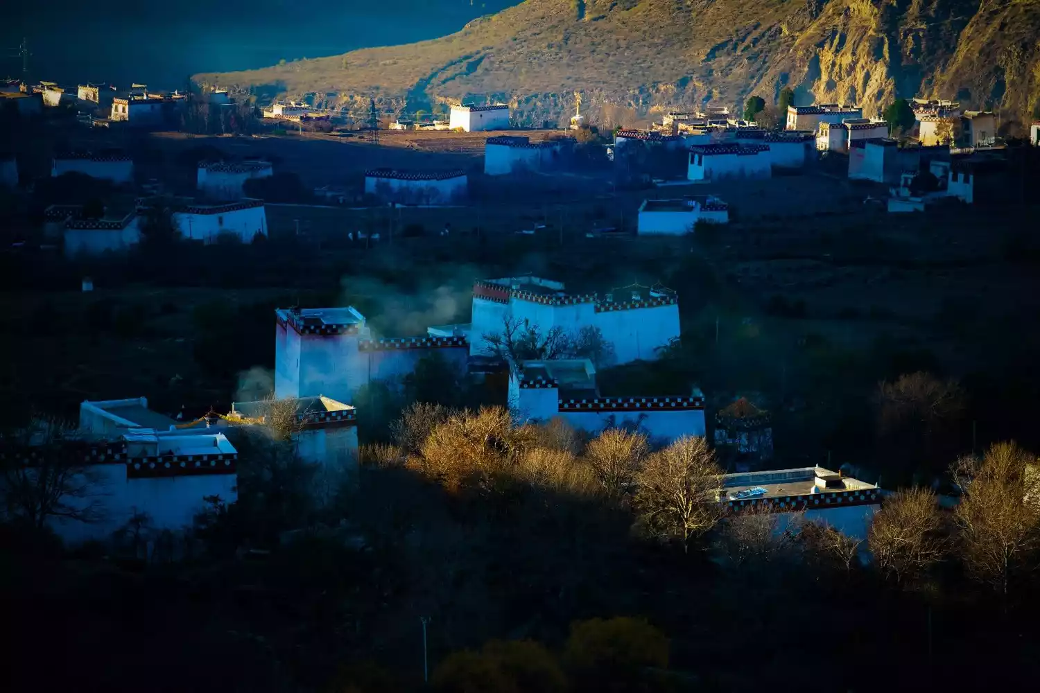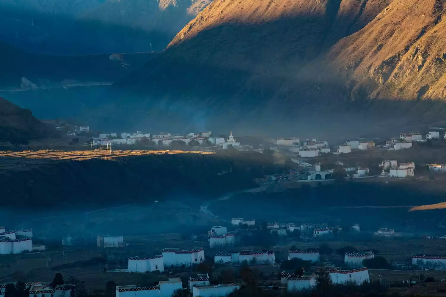 Spring and summer are Xiangcheng's most beautiful seasons. From the mountaintop, the white-scented houses look like lost pearls, dotted amidst a sea of greenery. As spring arrives and flowers bloom, Xiangcheng transforms into a paradise, sparsely populated by tourists, a place of tranquility and peace. Every morning and evening, divine light shines upon the area. In the sidelight, accompanied by morning mist or smoke from cooking fires, the entire valley, with its countryside and white-scented houses, resembles a dreamlike wonderland.