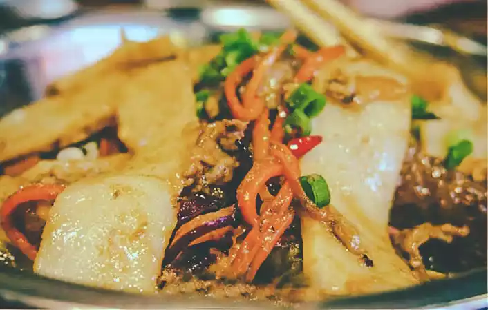 Guilin's cuisine is full of sour ingredients. Rice noodles and sticky rice are often topped with sour beans and radish, and there are many sour shops on the streets of Guilin. Here, you can find sour flavors you wouldn't expect: cucumber, mango, watermelon rind, etc., which are sweet, sour, and crisp, and worth a try.