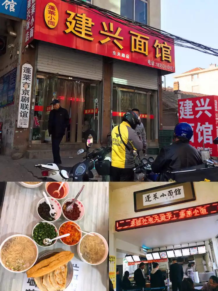 Finally, we had the famous Penglai noodles - Jianxing Noodle House. The noodles were really affordable, 3 yuan per bowl, and the taste was amazing. As a big eater, I felt like I could eat two bowls~ The chive dumplings were also super delicious and big. The three of us ate for more than ten yuan, which was very cost-effective and worth the half-hour walk.