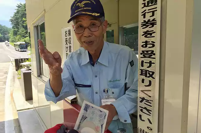 There is a toll booth before entering Mount Fuji, and bicycles are no exception. The uncle took a piece of paper and wrote 200 on it with a smile, 200 yen per bicycle.