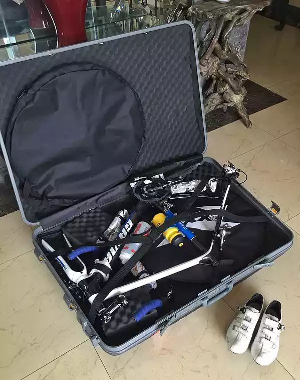 The total weight after packing, including cycling shoes, water bottle, tire repair tools, etc., is about 22kg. It is strongly recommended that cyclists choose hard plastic boxes to prevent their bikes from being damaged by rough sorting during shipment.