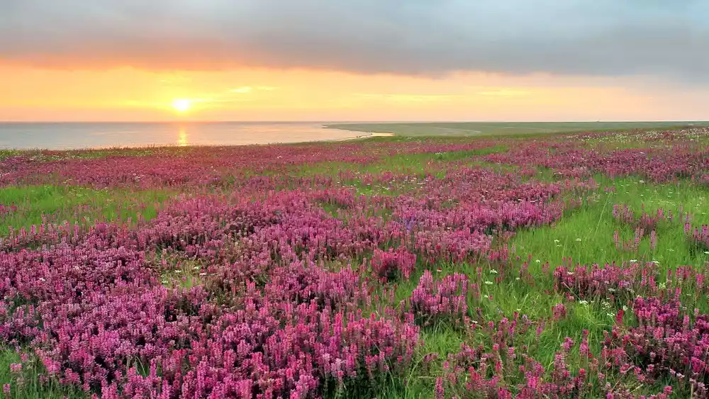 Located on the north shore of Qinghai Lake, the Fairy Bay Scenic Area blends highland wetlands, stunning lakeside and mountain scenery, grand sea worship ceremonies, Tibetan customs, and myths and legends. Fairy Bay is home to the whooper swan, a nationally protected species, where thousands of swans roost during the autumn and winter months. From June to October each year, the Fairy Bay wetlands bloom with vibrant flowers of varying colors, creating a sea of blossoms resembling a carpet woven by nature.