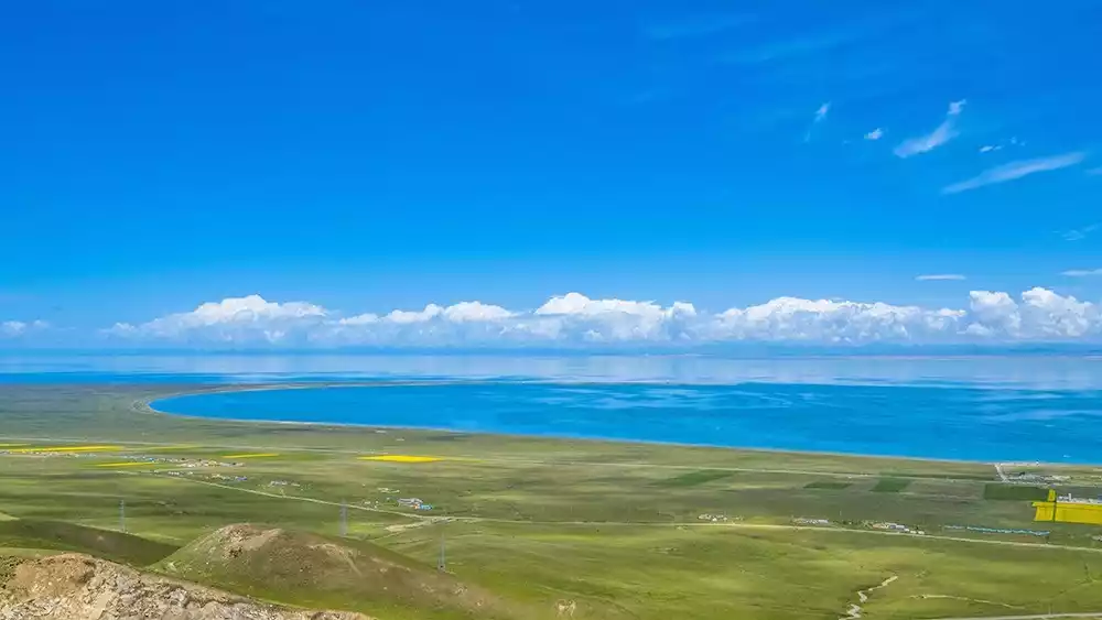 Of course, if you lack cycling experience or skills, a cycling greenway along the southern section of Qinghai Lake is also a great option. There's a dedicated cycling greenway here, and in the summer, with rapeseed blossoms everywhere and the blue sky, white clouds, and clear lakes, it's a fantastic way to simply cycle and enjoy the stunning scenery of the sea and sky blending into one.