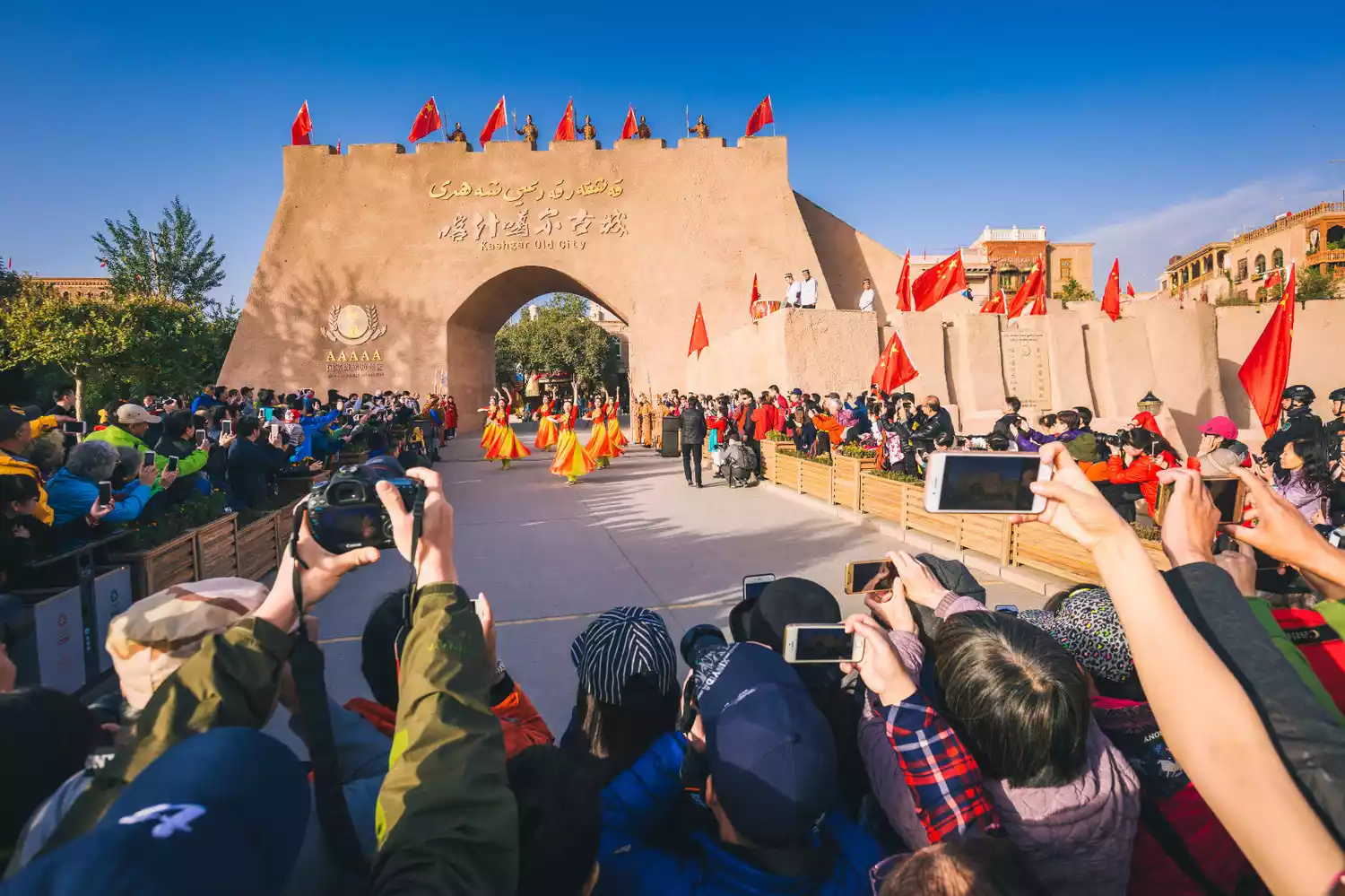 The Old City of Kashgar boasts a crisscrossing network of streets and alleys, offering a flexible and diverse layout and winding paths leading to secluded areas. Most of the dwellings are constructed of earth, wood, brick, and wood, many of which are centuries old. This is the only maze-like urban district in China characterized by Islamic culture. The residential complex in the Old City's core area is one of the largest adobe architectural complexes in the world. Adobe architecture itself holds immense historical significance and value, blending Han and Tang dynasty and ancient Roman influences with modern Uyghur life. Parts of the famous film "The Kite Runner" were filmed here. Every morning at 10:30 a.m., the opening ceremony of the Old City of Kashgar takes place at the East Gate (see the photo below). Be sure to witness it if you have the opportunity.