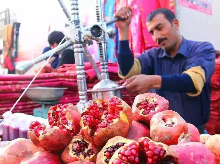 , but you may not have drunk pomegranate juice. Southern Xinjiang pomegranates are juicy and sweet, and you can often find stalls selling pomegranates and pomegranate juice on the streets. Bottles of freshly squeezed pomegranate juice offer a unique flavor.