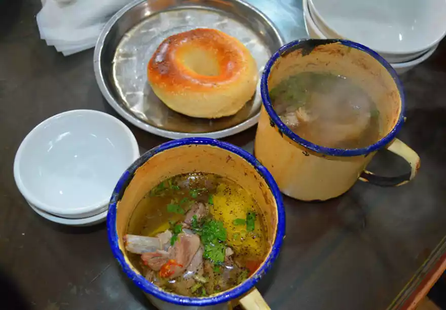 Comments: Because the sheep in Xinjiang are different from those in mainland China, and the lamb is freshly slaughtered, the broth is incredibly delicious. It's truly unforgettable. Uyghurs typically eat it with naan, a small, firm flatbread. The broth is broken into pieces and placed in a bowl. The broth is then poured over the naan and served once softened.