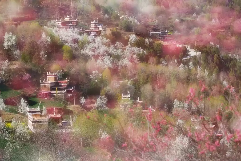 But I prefer the pear blossoms of Danba. The trees there are tall and old, and the blossoms are densely packed, scattered around the distinctive Jiarong Tibetan dwellings and watchtowers. This creates what is arguably the most beautiful Tibetan village scenery in the world. National Geographic China named the Danba Tibetan village, centered around Jiaju and Zhonglu, "China's Most Beautiful Village."