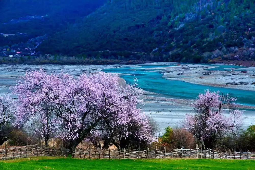 The Nyingchi area is known as the "Jiangnan of Tibet," meaning "the throne of the sun" in Tibetan. The Yarlung Zangbo River, a highland river, flows through the area. Every spring, the warm Indian Ocean current enters from here, bringing vitality to Nyingchi. Amidst the crisscrossing ravines, high mountains, and dense forests, a variety of landscapes are hidden. Three sacred places for viewing peaches in Nyingchi are:
