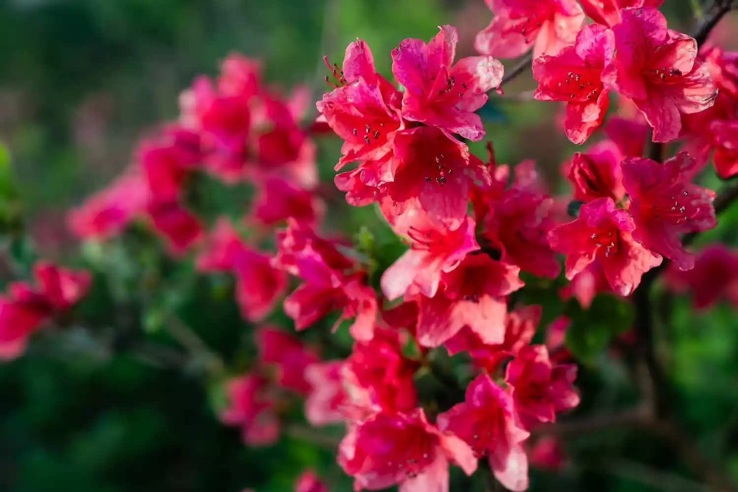 The azalea flower's language is "Forever Yours," representing the joy of love. It's said that people who love azaleas are pure and innocent, and when they see a mountain of azaleas in full bloom, it's the arrival of the god of love.