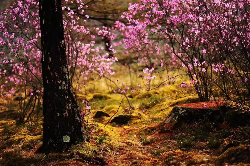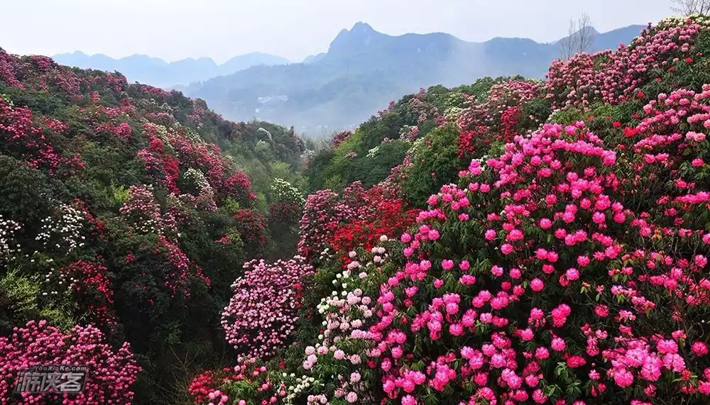 Over 60 species of rhododendrons grow on this 50-kilometer-long narrow hilly area. The most remarkable phenomenon is the "one tree, different flowers" phenomenon, where a single tree can produce up to seven varieties of flowers. This is the best-preserved, largest, and most diverse natural garden of wild rhododendrons to date. In spring, in February and March, the rhododendrons bloom across hundreds of miles.