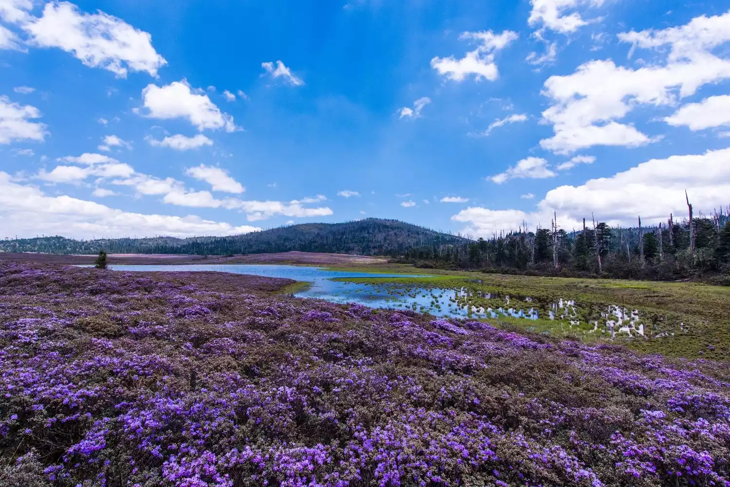 Qianhu Mountain, located in Tuanjie Village, Xiaozhongdian Township, Shangri-La County, is known as "Lamdongcuo" in Tibetan, meaning "Goddess Thousand Lakes." Stretching from Bigu Tianchi Lake in the north to Sanbihai Lake in the south, it covers over 40 square kilometers and stands between 3,900 and 4,200 meters above sea level. The scenic area is blanketed in vast forests and dotted with diverse alpine lakes. Qianhu Mountain boasts an unparalleled abundance of natural resources. Under azure skies, fluttering colorful prayer flags adorn sacred temples. For generations, the simple and devout people have cultivated this area. Qianhu Mountain's beauty is truly rare in Yunnan, earning it the nickname "miniature of Shangri-La." In late May, the rhododendrons bloom in masses, creating a scene reminiscent of a sea of pink, a truly captivating sight for young women. A highly recommended destination!