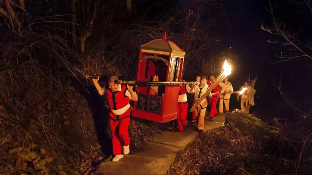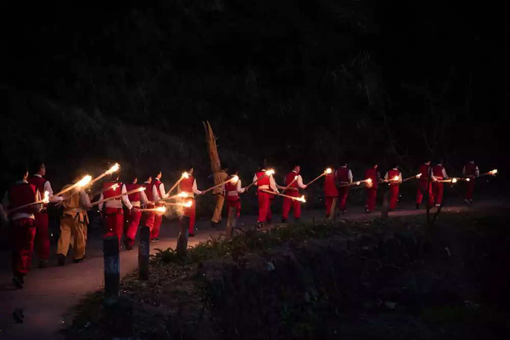 In the eighth year of the Wanli reign of the Ming Dynasty, Jianglingshang Village brought a dispute to the county government. The then-magistrate ruled against the village without investigating the facts, leaving the villagers furious and unable to redress their grievances. On the fifth day of the first lunar month in the ninth year of the Wanli reign (1581), upon learning that the newly appointed magistrate, Xiao Yuangang, was about to arrive, the villagers immediately organized over 30 young and middle-aged villagers to carry Xiao Yuangang's official sedan chair, nearly hijacking it, to the forest where the dispute had arisen. They then appealed to the magistrate on the spot, claiming their injustice. After carefully examining the forest boundary markers and historical records, Xiao overturned the verdict at dusk, redressing the injustice. To express their gratitude, the villagers, holding torches, hurriedly carried Xiao Yuangang's sedan chair to the village ancestral hall, offering the highest thanks to the magistrate who had intervened. On the tenth day of the first lunar month, Xiao Yuangang was finally carried back to the county capital. For over 400 years, the villagers of Jianglingshang Village have practiced the "seizing the county magistrate" ritual, embodying the timeless virtue of gratitude: "A drop of kindness should be repaid with a spring of water."