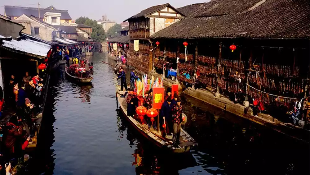 From the first to the fifth day of the first lunar month (February 5th to 9th), Wuzhen was once known as "a neighborhood with a hundred households, a market with ten thousand households," a term that derives from this. During the Spring Festival, wealthy families would host banquets in the neighborhood, inviting neighbors, friends, and passersby to share in the year's blessings and good fortune. Tables and chairs would be set up along the street, along with fine wine, dishes, and bowls, creating a steaming street feast. The Ming Dynasty poet Zhao Huan, in his poem "Wuqing Town Alleys," described the street as "a long street stretching two or three miles, with fragrant dust rising daily from the streets."