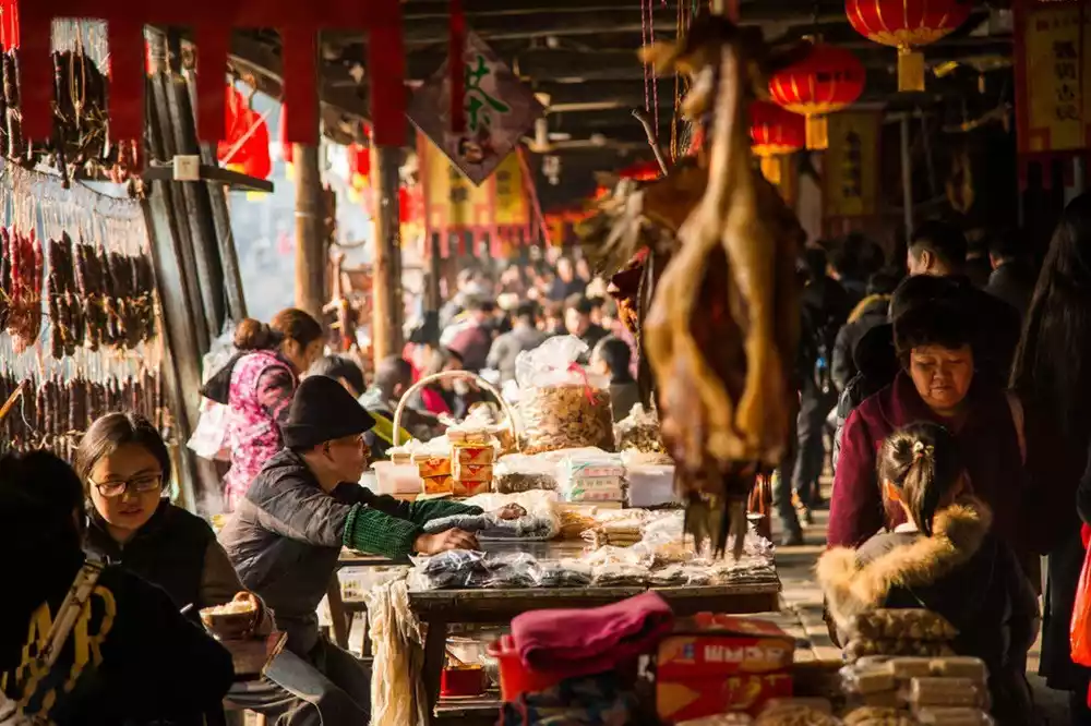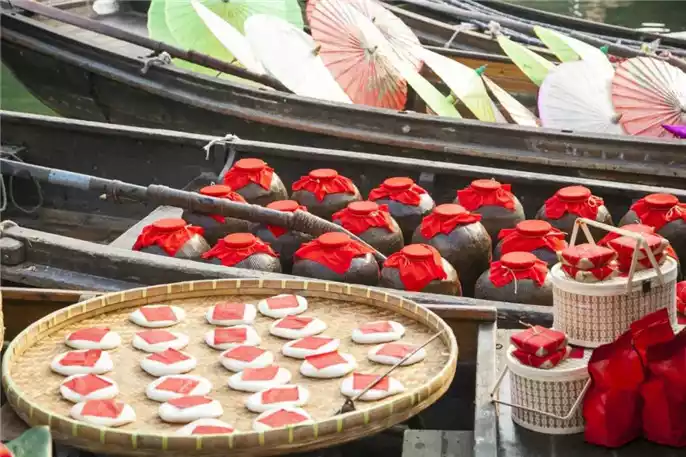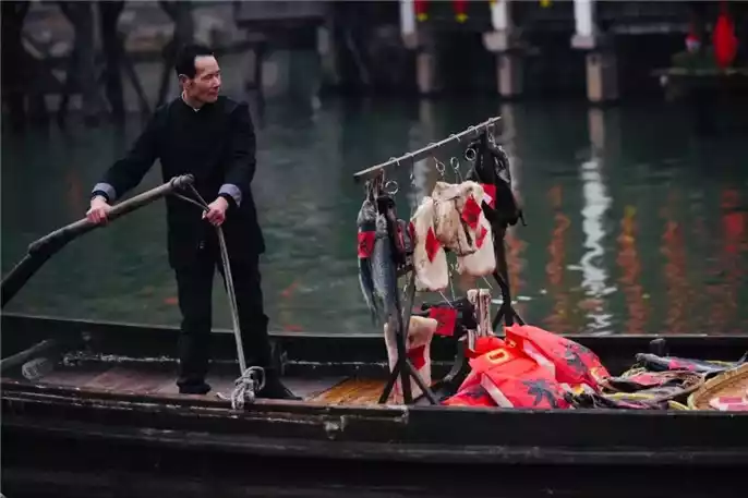 From the Little New Year's Eve to the Lantern Festival (January 28th to February 19th), Xizha's floating market, traditionally known as a "market," attracts farmers from all over the country, bringing their fresh produce, fruits, vegetables, and aged Wuzhen wine to trade on their boats. The shouts of the villagers and the bustling crowd create a lively atmosphere. Once the floating market opens, visitors flock from all directions. Besides the agricultural products available for trade, the market also boasts a wide variety of snacks, delicacies, fun activities, and other novelties.