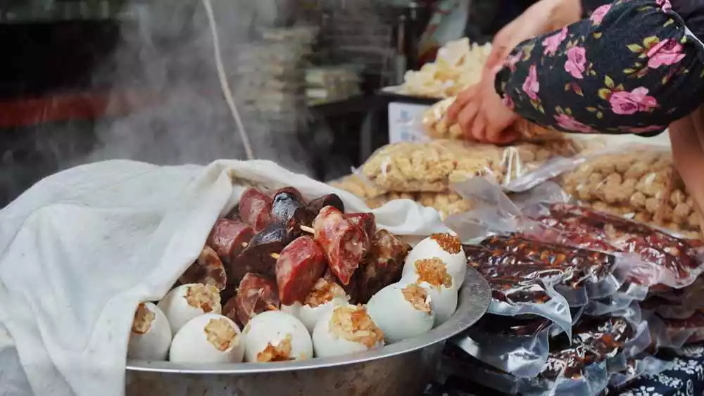 Anchang is also a paradise for foodies, with local sausages, Shaoxing duck, dried fish with pulled sugar, honey cake, Shaoxing fragrant cake, wine-flavored mooncake, osmanthus fragrant cake, osmanthus fried rice cake, fish skin wonton, heavy crispy sesame cake, pine nut cake, fried crispy fish, cream-filled pancake, xiangling, fragrant cake and many other snacks that cannot be named. Just hearing the names is enough to make your mouth water. They look tempting, smell mouth-watering and taste even more delicious when you eat them.