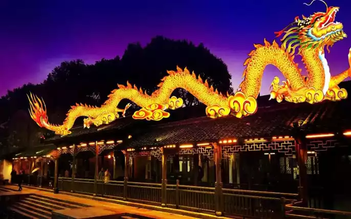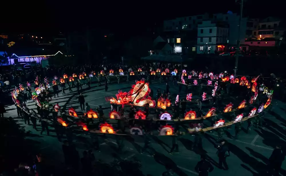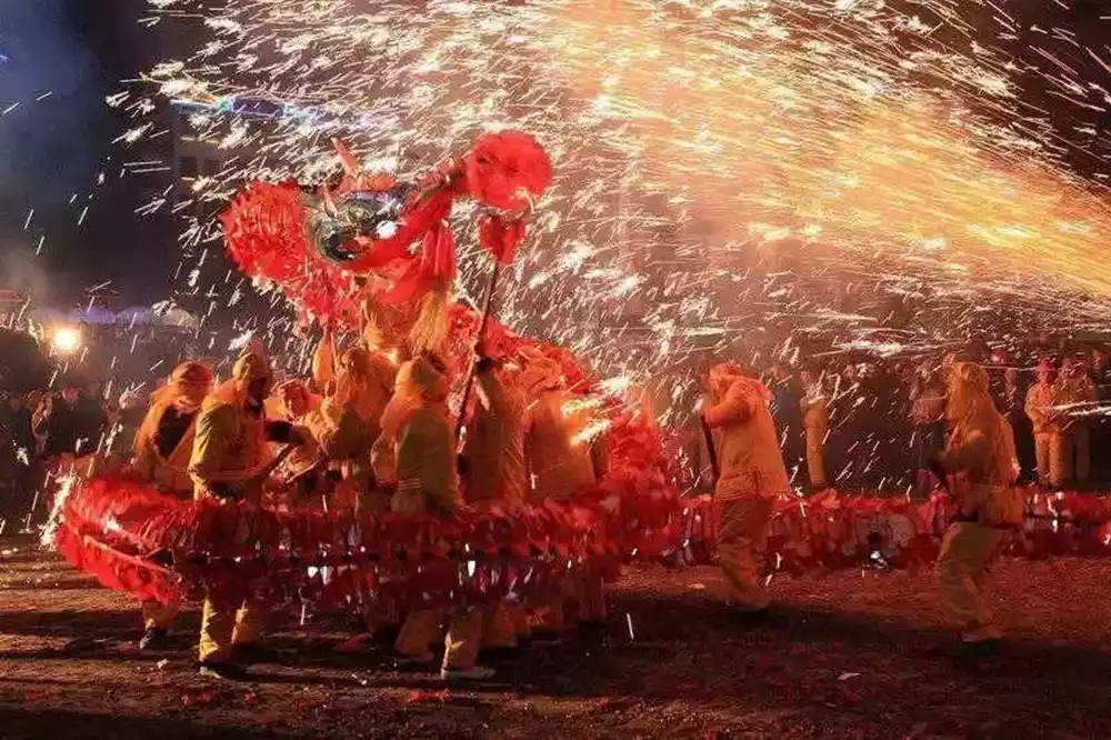 The "Ban Bench Dragon," also known as the "Plum and Bamboo Lantern," is a dragon dance that is said to have originated during the Han Dynasty, evolving from the religious practice of "dancing the dragon to pray for rain." Legend has it that long ago, during a severe drought, a water dragon from the East China Sea leaped out of the water, bringing down a torrential downpour. However, this dragon, violating divine laws, was chopped into pieces and scattered across the earth. People placed the dragon's body on a bench and connected it together (known as a "Ban Bench Dragon"). People spread the news day and night, hoping it would survive, and thus the custom of the "Ban Bench Dragon" dance arose. Dragon dances are divided into "dry dragon" and "wet dragon" dances. "Dry dragon" dances are mostly performed for entertainment, while "wet dragon" dances pray for rain. Wherever the "dragon" appears, people splash water to cheer it on, leaving the dancers drenched.