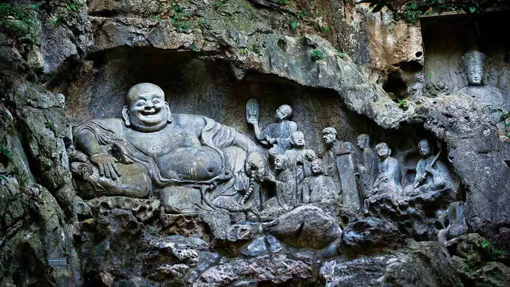 Lingyin Temple, founded in the first year of the Xianhe reign of the Eastern Jin Dynasty (326 AD), boasts a history of approximately 1,700 years and is Hangzhou's oldest famous temple. Located west of Hangzhou's West Lake, Lingyin Temple is nestled against Beigao Peak and faces Feilai Peak. The two peaks, nestled between them, offer breathtaking views of towering trees, the ancient temple nestled deep in the mountains, and a shroud of clouds and mist. The temple's founder was Huili, a Western Indian monk. During the early Xianhe reign of the Eastern Jin Dynasty, he traveled from the Central Plains to Zhejiang. Upon reaching Wulin (present-day Hangzhou), he observed a peak and exclaimed, "This is a small ridge from Mount Lingjiu in Central India. I wonder when it arrived here? When the Buddha was alive, it was often hidden by immortals." He then built a temple in front of the peak, naming it Lingyin. Since its founding, Lingyin has been a gathering place for eminent monks and scholars, where Confucianism and Buddhism intertwined, discussions of Zen and Taoism took place, and poetry and recitation have become a cultural spectacle. In addition, there are many ancient Buddha statues, ritual instruments, sutra pillars, stone pagodas, imperial steles, calligraphy and paintings and other historical relics in the temple, which are precious Buddhist cultural heritage of Lingyin Temple.