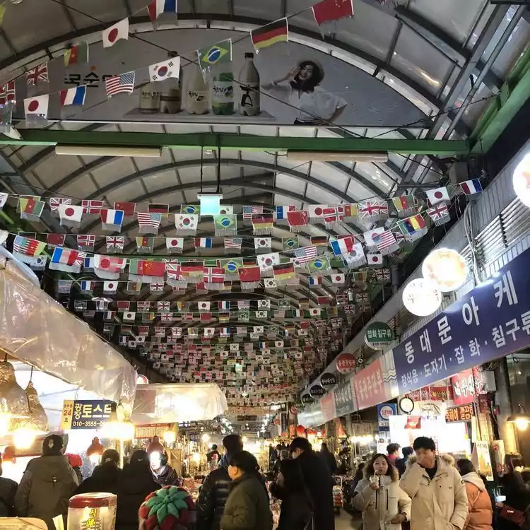 If you're a regular at Korean variety shows, this place might look familiar. Gwangjang Market is a place where you can find all sorts of Korean snacks, including live octopus. It's also a popular spot for local Koreans to sit and enjoy a few drinks and snacks, much like a food stall or barbecue.