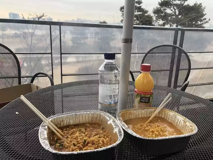 Korean food is pretty much the same, but eating rice and soup on a cold day is incredibly comforting. I really like the pace of Daegu. It's a small city, and prices are lower than in Seoul. You should definitely come back and experience it next time. Daegu also has tons of dessert shops, so if you love trending food, don't miss out. Daegu is really small.