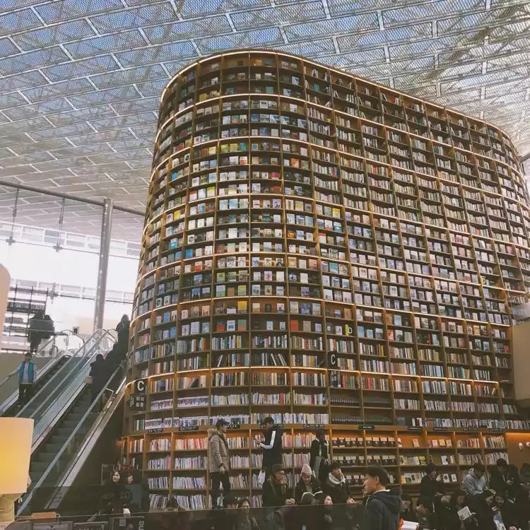 There is a bookstore near Gwanghwamun - Daewoo Bookstore. Some idols also come here and it has appeared in Korean dramas. After strolling around Gwanghwamun and Hanok Village, you can come here to drink coffee and take photos. I think it is very pleasant.