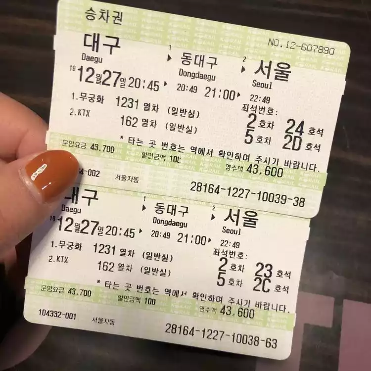 I have to praise South Korea's high-speed rail and the conscientiousness of the Korean people. Korean high-speed rail doesn't require real-name registration; you can buy your ticket the same day at the self-service train counter at the station (the one at Seoul Station has English information, but when we returned, the one in Daegu was only in Korean). There's no security check or ticket inspection required. When departure time approaches, a large screen displays it. You go to the corresponding platform, wait for boarding, find your seat, and sit down. There are conductors on board, but they don't check tickets. They're truly conscientious!