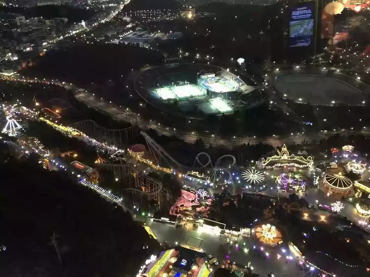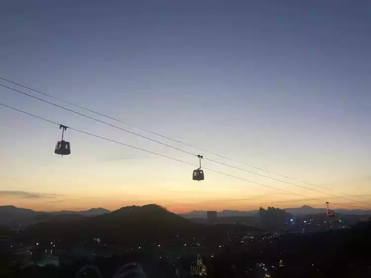 There's a tower in Daegu called 83 Tower, similar to Namsan Tower, but it's inside an amusement park. If you're visiting the amusement park, you can go directly up there, or you can just go to the tower for the night view. There's a free shuttle bus that runs every 30 minutes.