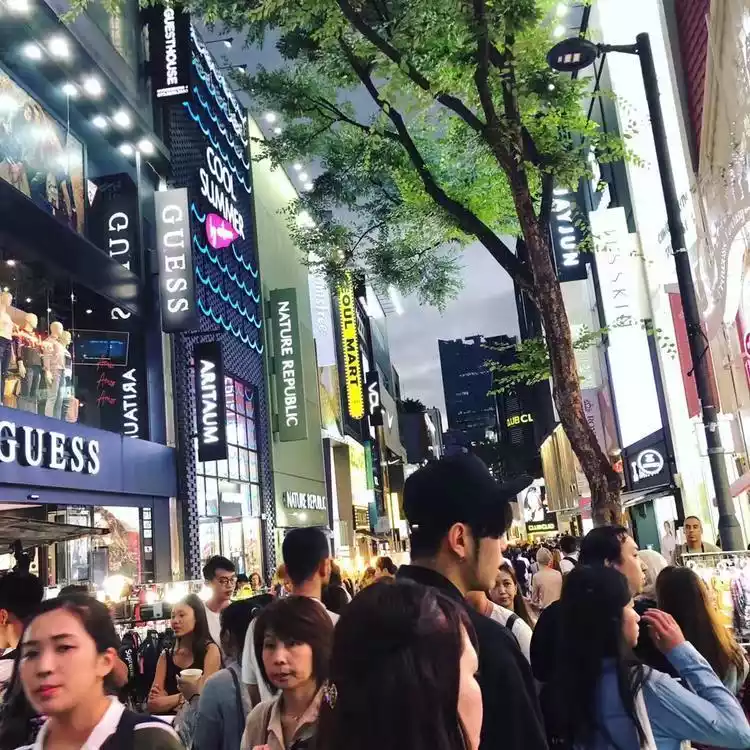 Don't rush to exchange money in Myeongdong. While there are plenty of shops, they vary in size, so try a few. Even a 0.50 extra is still a lot of money, right? Etude House, Nature Land, Uniqlo, MCM, Innisfree, and many more are all available in Myeongdong. Some offer on-the-spot tax refunds, while others will give you a tax refund form that you can return at the airport. You can get a tax refund for just 30,000 won! These things are really cheap. For example, an Etude House eyebrow pencil is only 10 won. Besides cosmetics, clothing, shoes, and snack shops, Myeongdong also offers street food and dining options. Most restaurants specialize in soups and rice, cheese dishes, BBQ, and bibimbap.