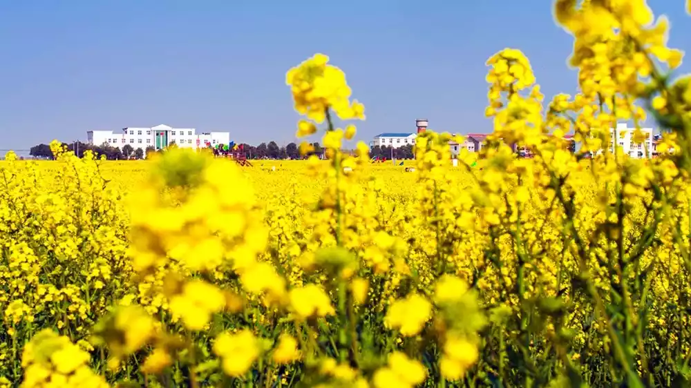 Ten thousand acres of rapeseed flowers are in full bloom in Xiaosi. Looking around, you can see a golden ocean and the air is filled with intoxicating floral fragrance. Surrounded by the sea of rapeseed flowers, you can walk along the plank road deep into the flowers, get close to the rapeseed flowers, and watch the windmills turning in the wind.