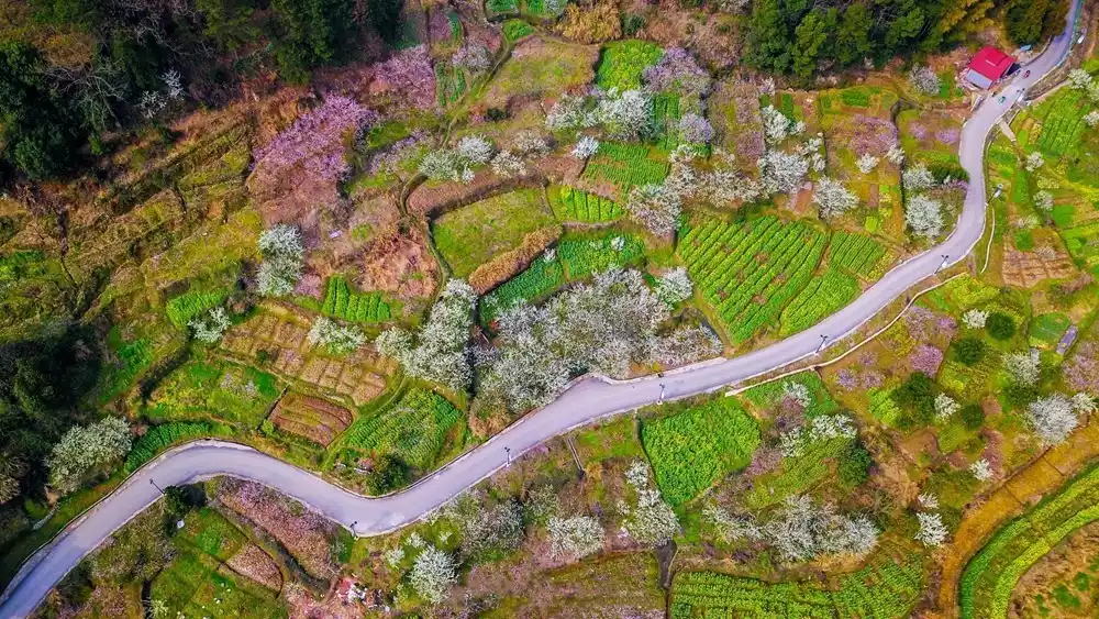 Xitingyan Cherry Blossom Viewing Route: Hangrui Expressway (Chongyang Exit) - Tiangao Expressway - Provincial Highway S246 - Xiaodonggang Shenjiadun