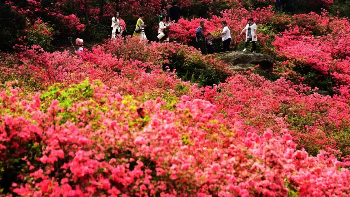 "In April, Macheng is the perfect place to see azaleas." Macheng is the perfect place to see azaleas near Wuhan. Macheng boasts over one million mu (approximately 1,000 hectares) of wild azaleas. Compared to rapeseed flowers and cherry blossoms, azaleas bloom later.