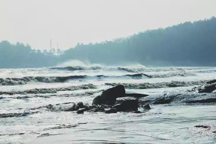 Legend has it that in ancient times, a sister-in-law vowed to worship Buddha. After years of hard work, they saved enough money to buy a boat and sailed across the Lotus Ocean to offer pilgrimage to the mountain. However, just as the boat docked, the sister-in-law's period began. Feeling unclean, she dared not enter the mountain to face the Buddha. The sister-in-law blamed her for not being blessed enough to make the pilgrimage, so she journeyed alone. At noon, the tide rose, pushing the boat further from shore. The sister-in-law sat alone in the boat, hungry and exhausted. Just then, a woman approached from the shore, carrying a food box. She threw stones into the tide and, using them as a step, made her way to the boat. She claimed her sister-in-law had asked her to bring the food box. Upon returning from her pilgrimage, the sister-in-law heard about this and, remembering how she had just seen the sleeve of the Bodhisattva Guanyin wet while worshipping Buddha, she had a sudden realization, realizing it was the Bodhisattva's doing. She hurried back into the mountain to kowtow before Guanyin.
