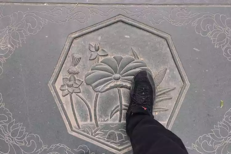 Stepping on the square bricks engraved with lotus flowers will bring you good luck of "lotus blooming with every step".