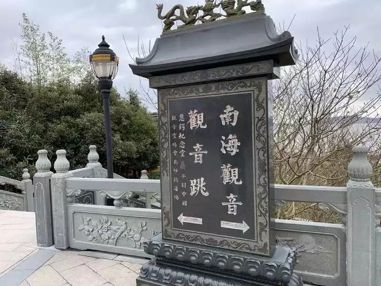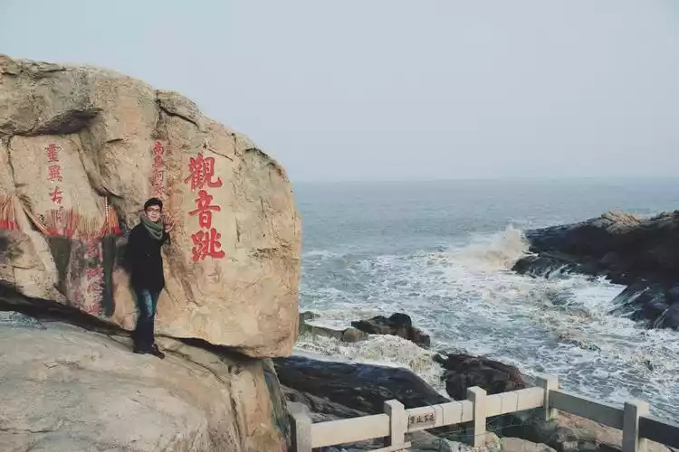 On the other side of Nanhai Guanyin is "Guanyin Tiao". According to legend, Guanyin Bodhisattva came from Luojia Mountain to Putuo Mountain to establish a Dharma place. She stepped on this stone and left a footprint, so it was called "Guanyin Tiao".
