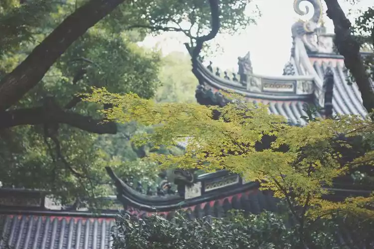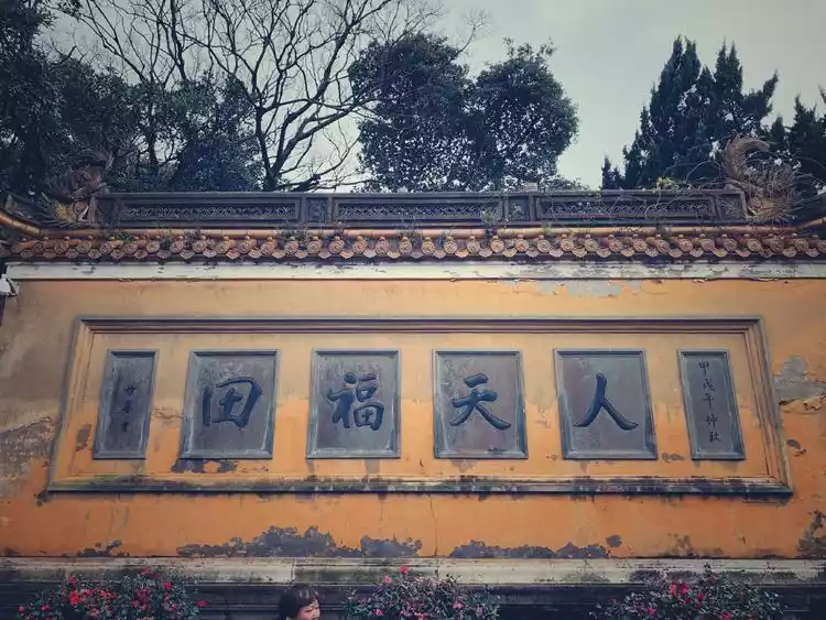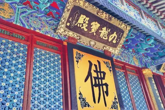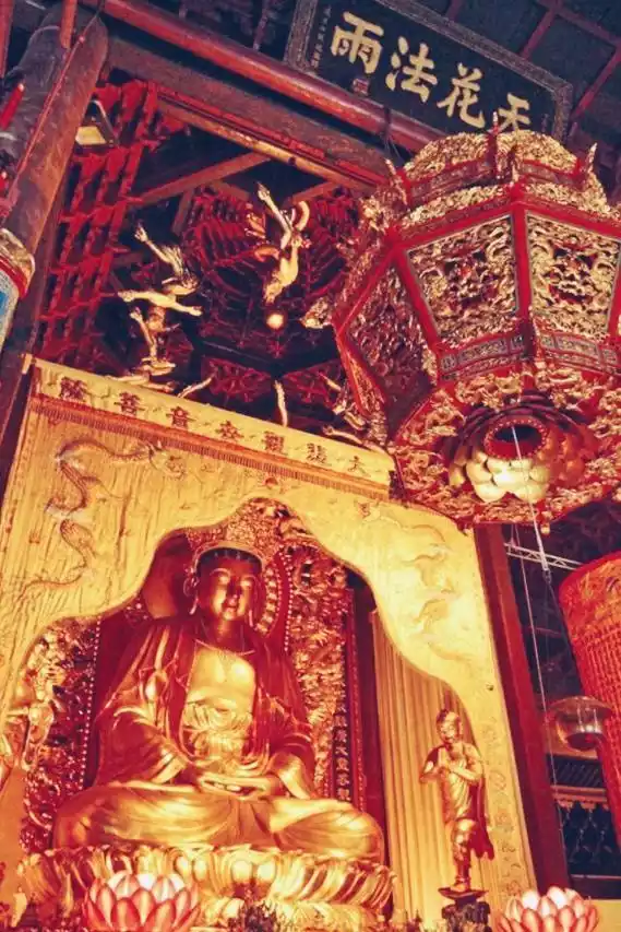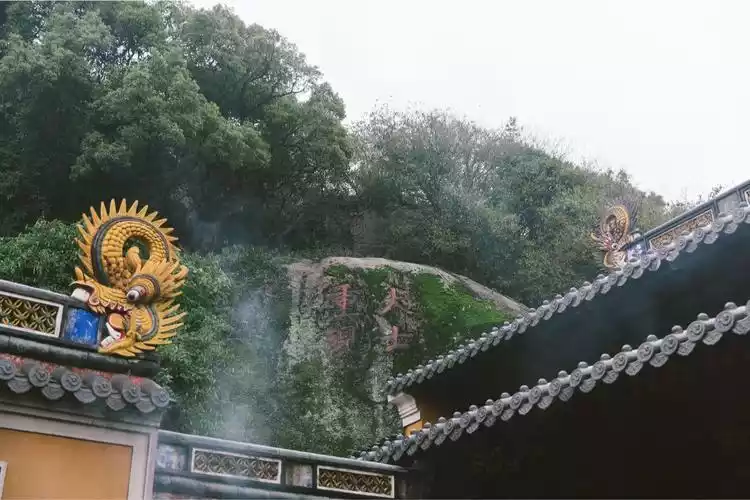 Fayu Temple boasts exquisite architecture, encompassing seven halls and thirteen rooms, with the Yuantong Hall being the most famous. According to the "Putuo Luojia Mountain Records," "The Yuantong Hall has seven rooms and fifteen pillars. ... The inscription inscribed by the Emperor Kangxi, 'Tianhua Fayu,' adorns the hall. Its roof, adorned with nine coiled dragons and yellow tiles, was bestowed upon it by the Emperor Kangxi upon the removal of the old Jinling Hall, hence the name Nine Dragons Hall."