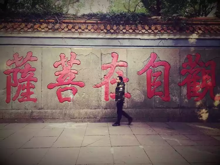 When you reach the stone carving of "Sea and Sky Buddhist Kingdom," you're not far from Foding Mountain. "Sea and Sky Buddhist Kingdom" was inscribed by Hou Jigao, the then-Ming Dynasty imperial commander of Zhejiang. Hou Jigao was not only a general who fought against the Japanese invaders, but also an accomplished calligrapher.