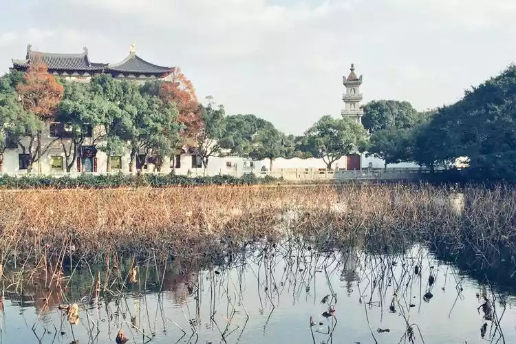 In front of Puji Temple, there's a shallow lotus pond. In autumn, the lotus flowers have all faded, leaving only withered leaves floating on the surface. Opposite the temple's main gate, there are three passages across the lotus pond. The middle passage is said to have been used by the emperor, leading directly to the main gate. The eastern passage, for civil and military officials, features an arched bridge spanning the pond, known as the Yongshou Bridge. The western passage, for civilians, has a horizontal horizontal bridge across the water, facing the Yongshou Bridge.