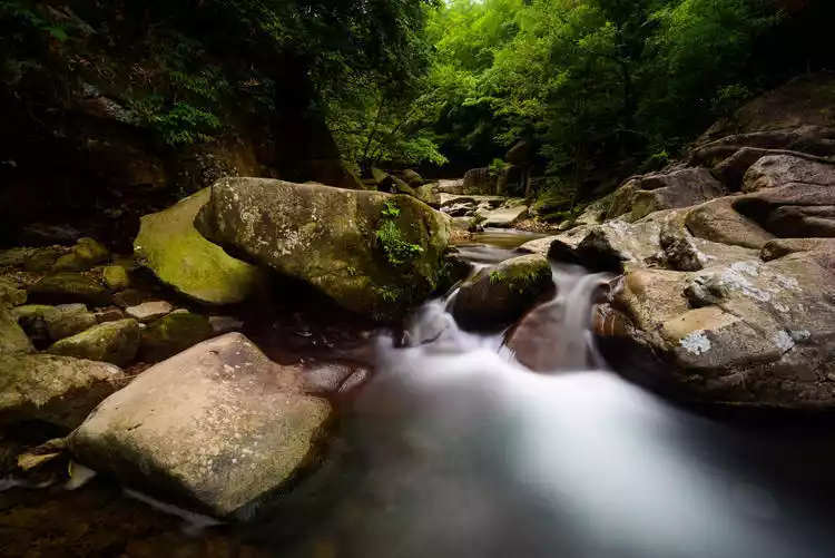 There's a stream in the mountains, neither deep nor shallow, formed by a mountain spring. In its narrow spots, it gurgles, allowing you to wade across with just a few stones. In its wider spots, it's like a deep pool, crystal clear and shimmering. (PS: This photo was taken with an ND1000 filter, 30-second exposure.)