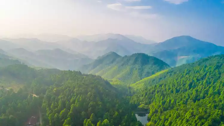 In Huading National Forest Park, lush vegetation provides a vast parasol for our gaze. The hazy, distant mountains, shrouded in a veil, appear indistinct, sometimes far, sometimes near, sometimes distant, amidst the drifting clouds. Like a few strokes of light ink smeared across the blue sky.