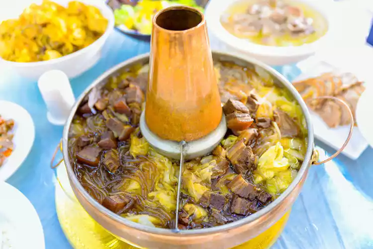 The Bashang grasslands are lush with grass and water. The mutton hotpot here features carefully selected, tender ingredients, evenly sliced paper-thin meat, and a variety of flavorful seasonings. The meat is fragrant and not overpowering, and can be eaten immediately after boiling, boasting a pure, fresh, and delicious flavor. In the freezing winter of Bashang, a copper-pot mutton hotpot warms the body and whets the appetite.