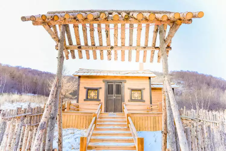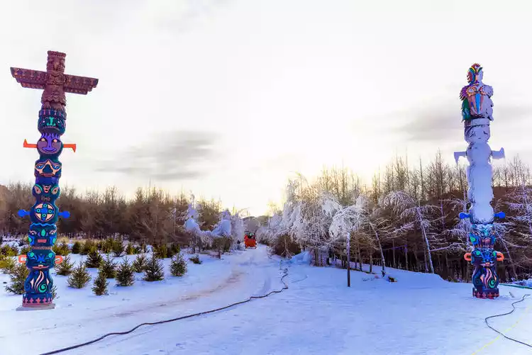 There are twelve different Manchu totem pillars at the entrance of the forest area. The totem pillars are composed of the water god, fire god, Hercules, wind god, direction god, and lightning god, which show the primitive worship of natural phenomena by the Manchu ancestors.