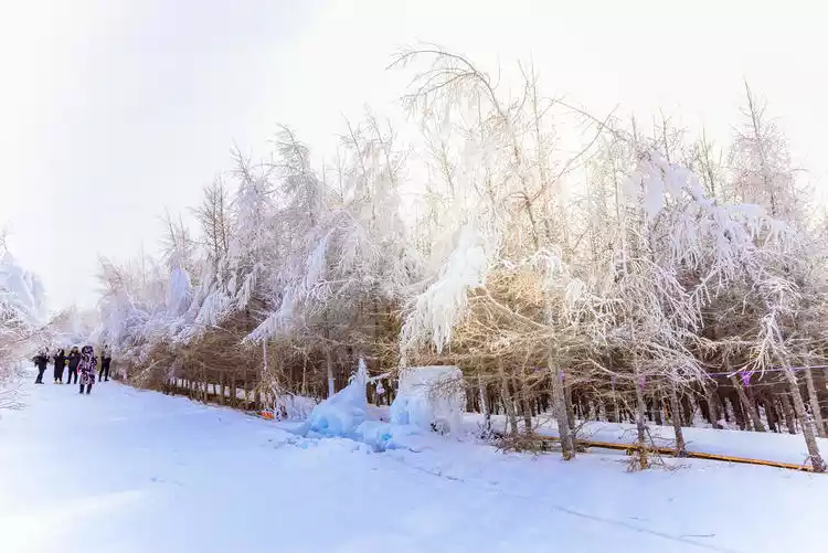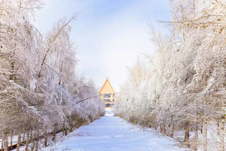 During the day, the primeval forests of Xuexiang are filled with naturally formed rime, tree hangings, various snow pile shapes and beautiful snow mushrooms. There are also some natural landscapes such as Tianjing Lake, Wucai Pool, Mushroom Street, Tree House Zone, Forest Tribe, and Birch Forest. Under the cover of white snow, they form an indescribable dreamlike beauty.