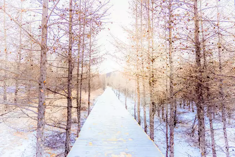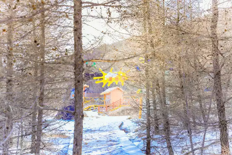 Winter, clad in its plain attire, slowly arrives. The colorful forest, stripped of its former vibrant colors, now uses simple lines to create a romantic, dreamy snowy landscape, pure, transparent, and light and natural. Snowflakes fall across the Fairy Valley, their tenderness adorning the winter's bleakness with a touch of tenderness. Because of the snowflakes' tenderness, the colorful forest is imbued with a brilliant white, each shimmering with winter's beauty. Because of the falling snow's tenderness, the colorful forest feels renewed, and the trail of footprints in the snow infuses the winter with passion.