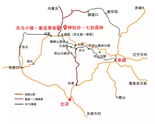 2. Chengde City - National Highway 112 - Fengshan Ancient Town - Pingdingshan Forest Park - Fengning County - Tucheng - Lama Mountain Scenic Area - Northern Beijing's First Grassland - Fairy Valley Colorful Forest
