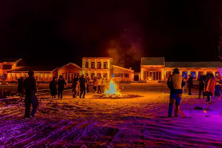 At night, Xuexiang is even more bustling, with lights and colorful decorations everywhere. Snow mushrooms are particularly charming under the illumination. Everyone makes dumplings, rolls oatmeal noodles, spreads rice cakes, dances the yangge (Chinese folk dance), and performs the Guozhuang (Chinese folk dance)—a scene reminiscent of the Manchu Lunar New Year. If you're lucky, you might even see Santa Claus parading on his sleigh, a sight that feels like stepping through time and space into a fairytale world.