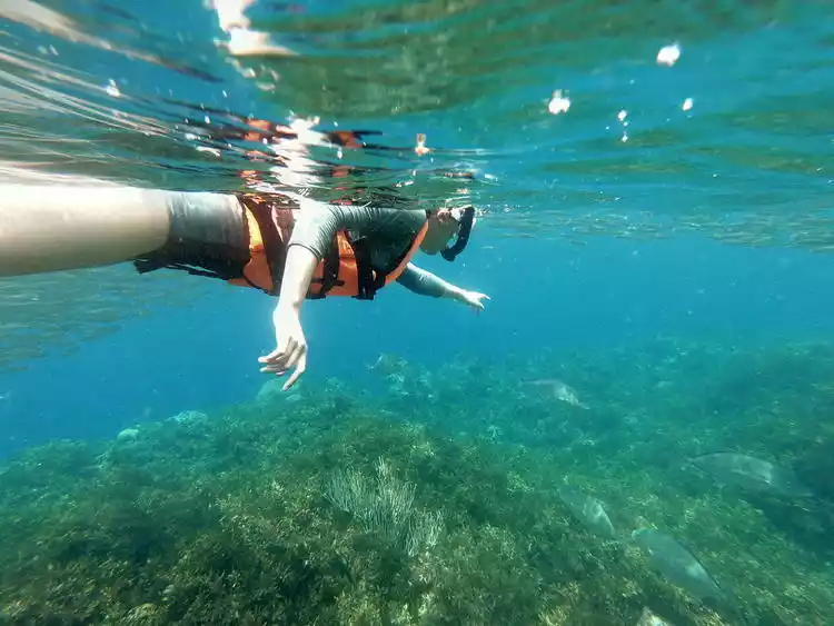 The water quality is super good a little bit outside the sea, and there are not many people. You can see a lot of fish and corals and schools of sardines while snorkeling.