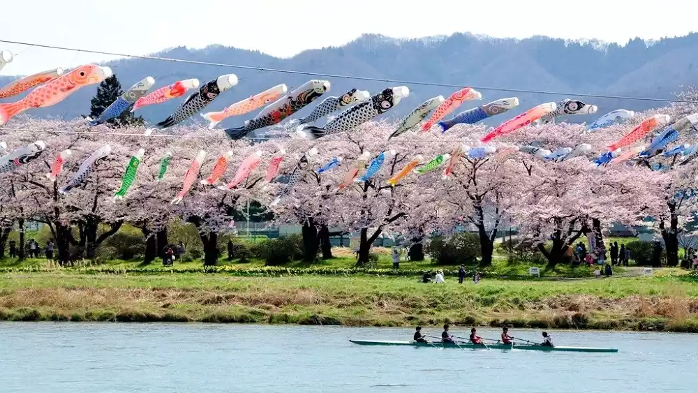 The Kitakami Tenshochi Cherry Blossom Festival, held annually from April to May when the cherry blossoms are in full bloom, is bustling with visitors flocking to the park. On May 5th, Children's Day (Boys' Day) in Japan, rows of carp streamers are hung across the Kitakami River to pray for the health and safety of children. Besides the beauty of the cherry blossoms themselves, the park's diverse ways of viewing them are also a major draw.