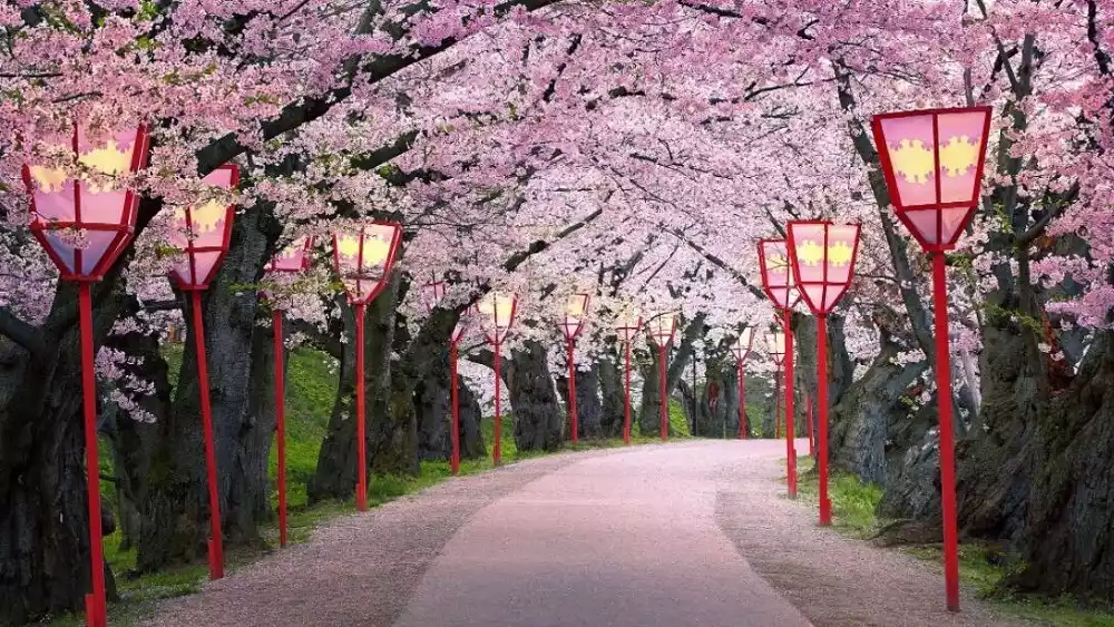 This park, covering an area of approximately 29,300 square meters, is home to approximately 10,000 cherry trees and 100,000 azalea trees. Every year during the cherry blossom season, the cherry blossoms along the two-kilometer stretch of Kitakami River in the park bloom simultaneously, creating a spectacular sight.