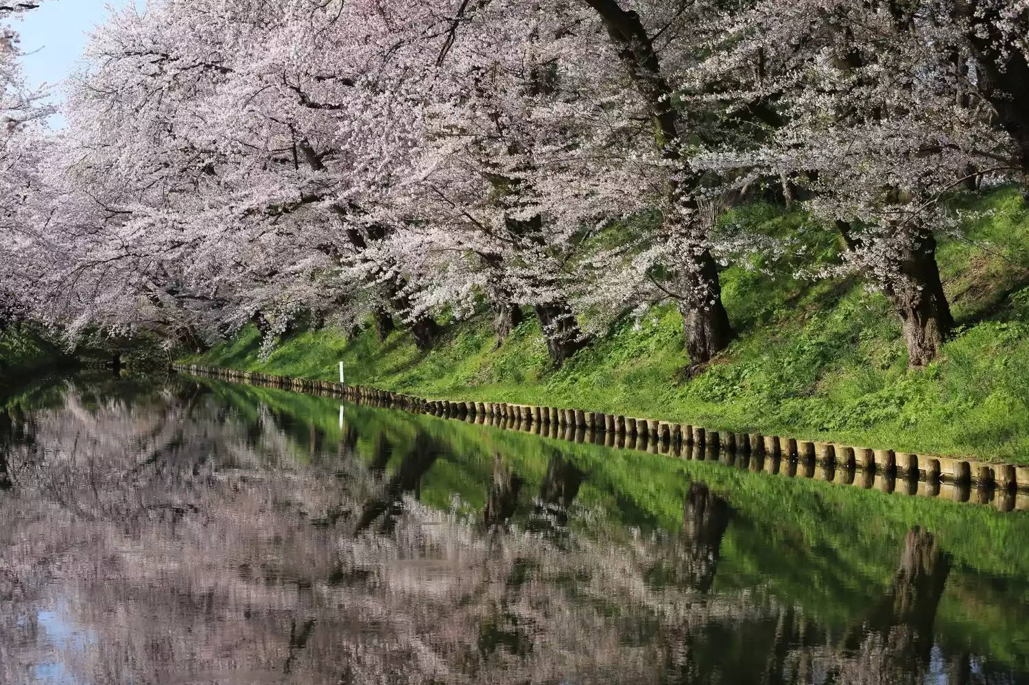 Furthermore, the "Hirosaki weeping" cherry trees planted in 1914, especially the "Goto cherry trees" that hang directly from the stone steps to the water, fully embody the beauty of the national flower recognized by people.