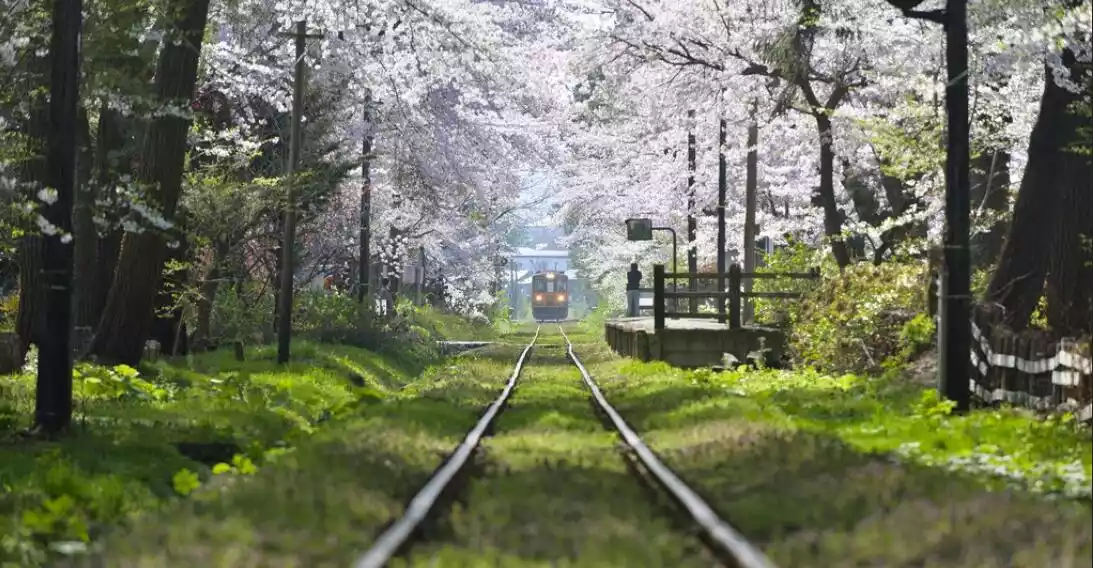 A lesser-known option: Every spring, Japan launches a "Sakura Train," offering a breathtaking ride through a sea of blossoms. Tsugaru Railway - Aomori's cherry blossom viewing train.
