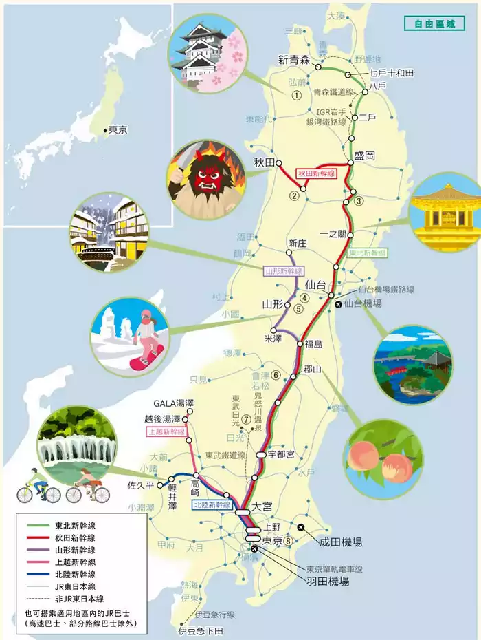 ▶ Available from: Tokyo in the south and Aomori in the north, covering almost the entire Tohoku region. Available for all Shinkansen and express trains, including ordinary carriages!